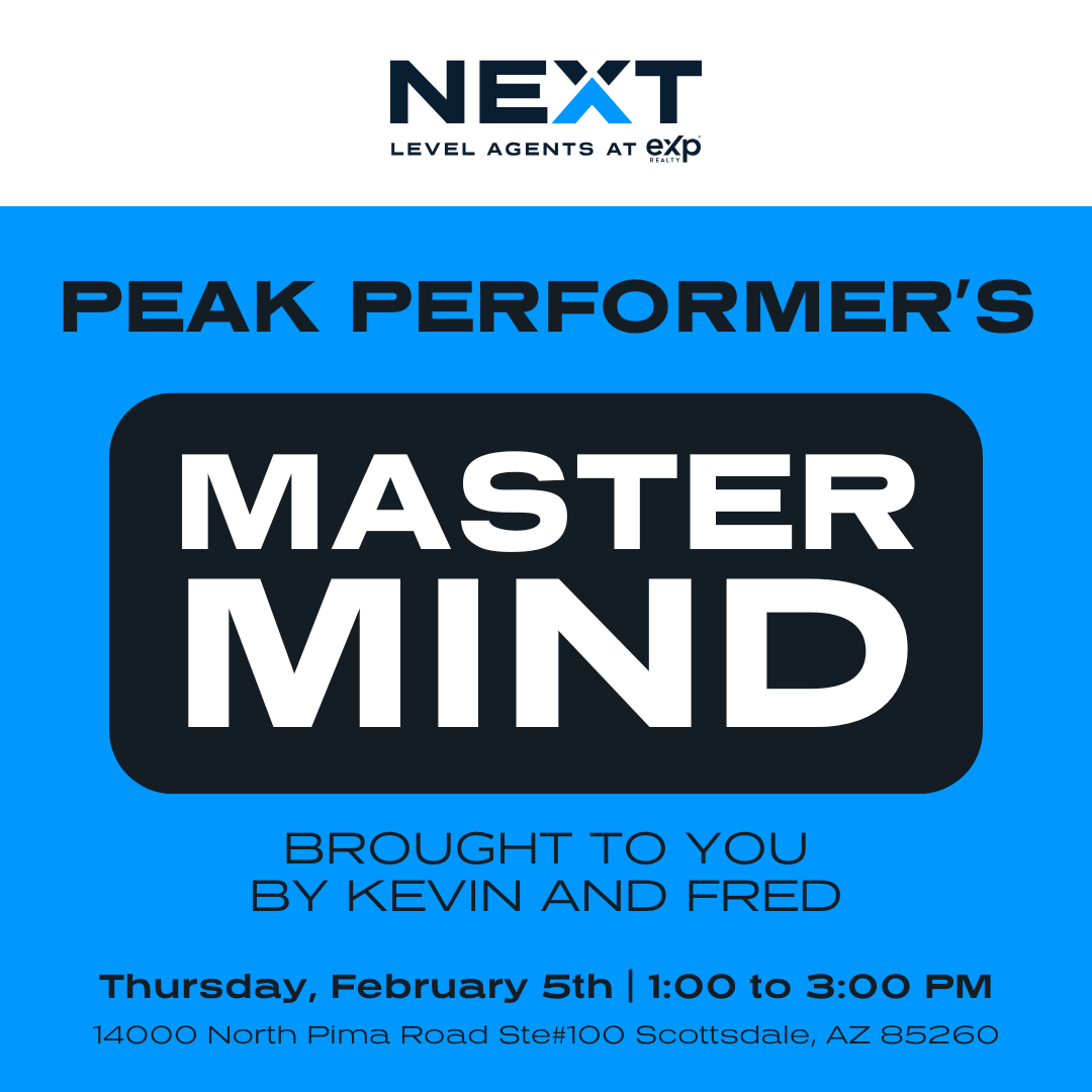 Fidelity National Title Office - Training Room 14000 North Pima Road Ste 100, Scottsdale, Arizona, United StatesJoin Kevin & Fred, along with some of the top agents in our state, for our first Peak Performers Mastermind of the year.